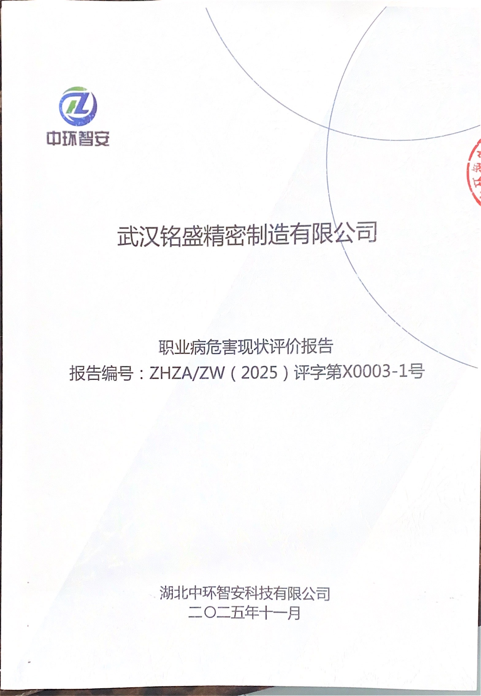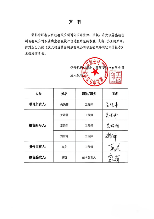 武汉铭盛精密制造有限公司职业病危害现状评价 ZHZA/ZW(2025)评字第X0003-1号 |