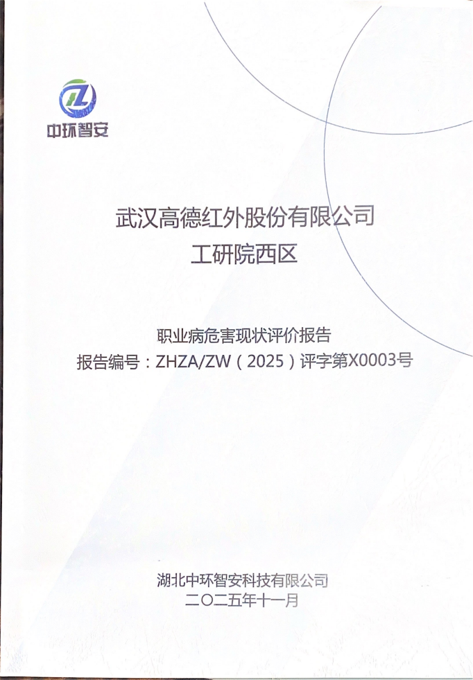 武汉高德红外股份有限公司工研院西区职业病危害现状评价 ZHZA/ZW(2025)评字第X0003号 |