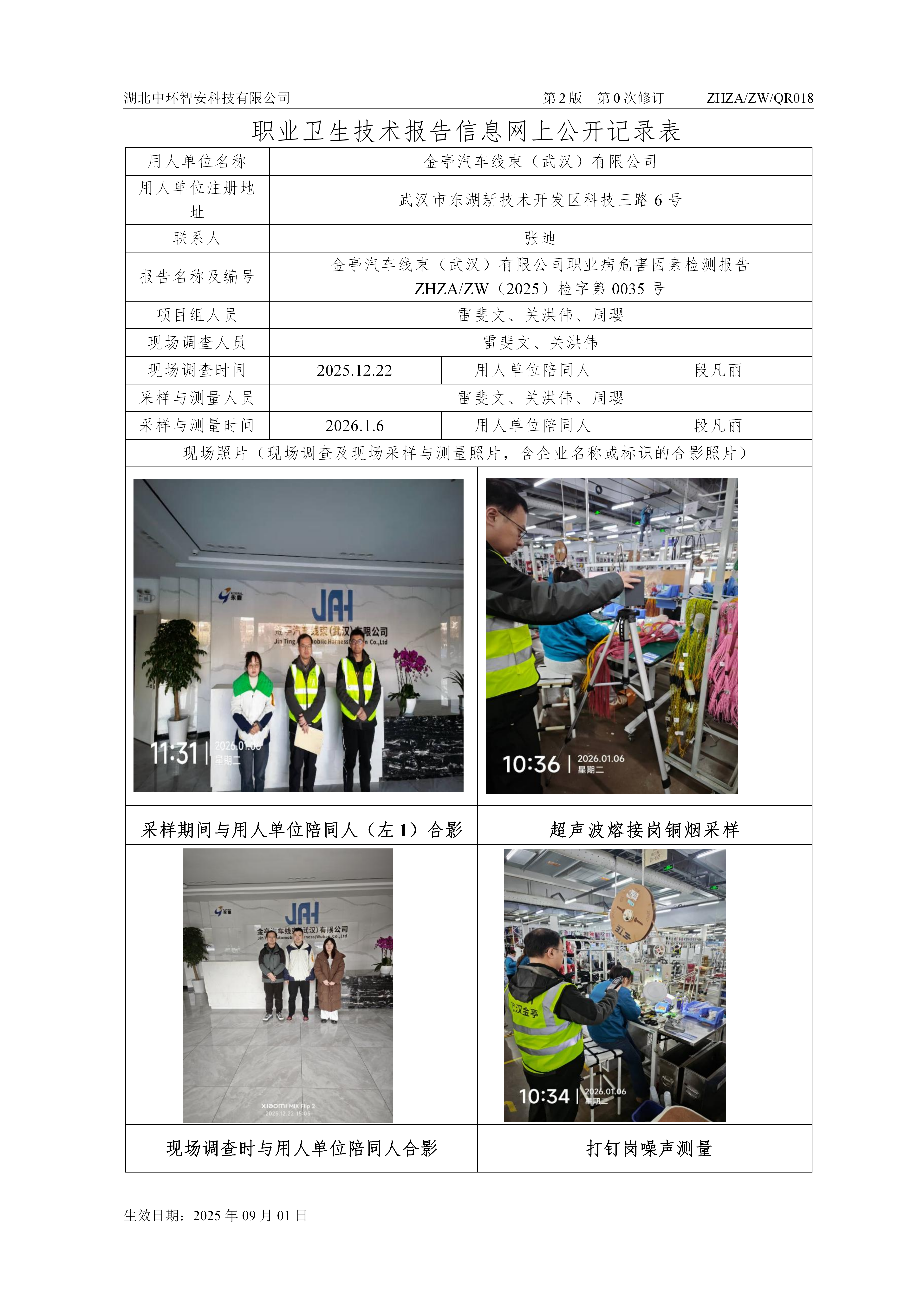 金亭汽车线束(武汉)有限公司职业病危害因素检测报告